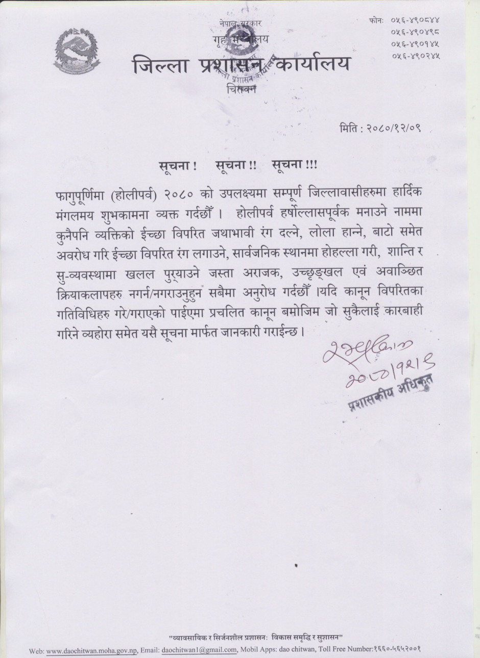 © सर्वाधिकार सुरक्षित जिल्ला प्रशासन कार्यालय, चितवन