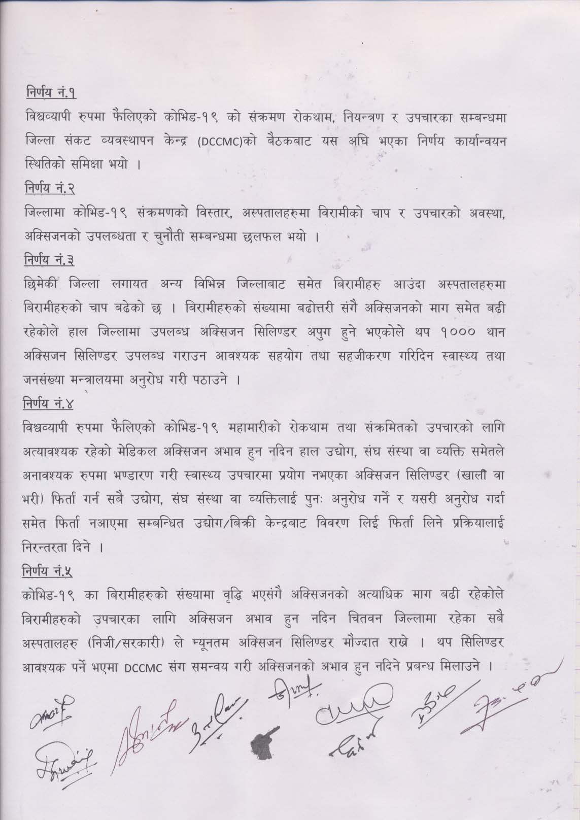 जिल्ला कोभिड-१९ संकट व्यवस्थापन केन्द्र (DCCMC) को मिति २०७८/१/२७ काे निर्णय