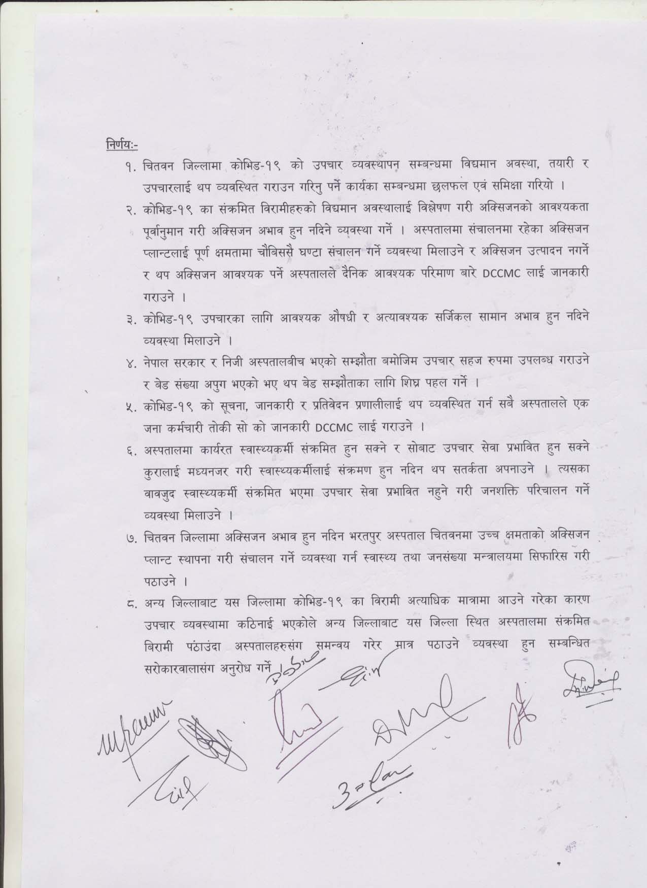 मिति २०७८/१/२६ मा सरकारी र निजी अस्पतालका प्रमुख तथा प्रतिनिधिहरुको बीच कोभिड-19 नियन्त्रण तथा रोकथाम सम्बन्धी बैठकबाट भएका निर्णयहरु