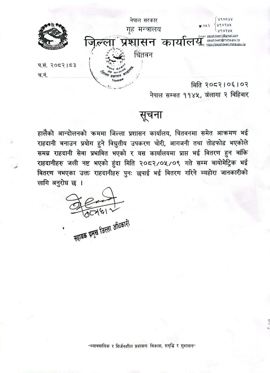 © सर्वाधिकार सुरक्षित जिल्ला प्रशासन कार्यालय, चितवन