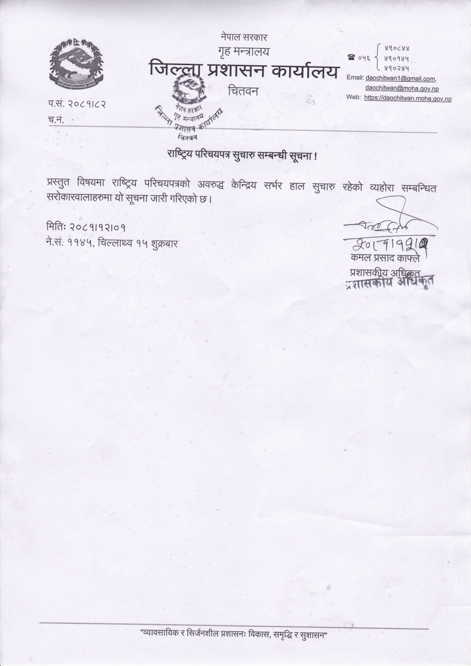 राष्ट्रिय परिचयपत्र सुचारु सम्बन्धी सूचना !