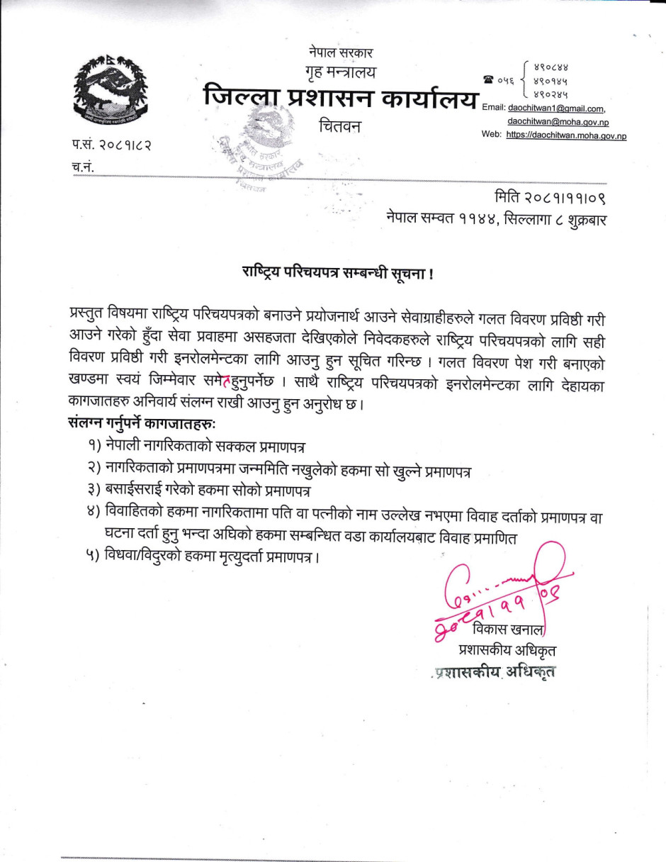 राष्ट्रिय परिचयपत्र सम्बन्धी सूचना