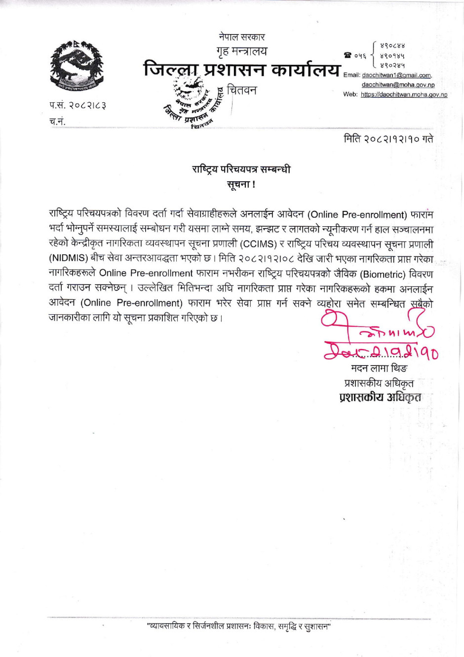 राष्ट्रिय परिचयपत्र सम्बन्धी सूचना !