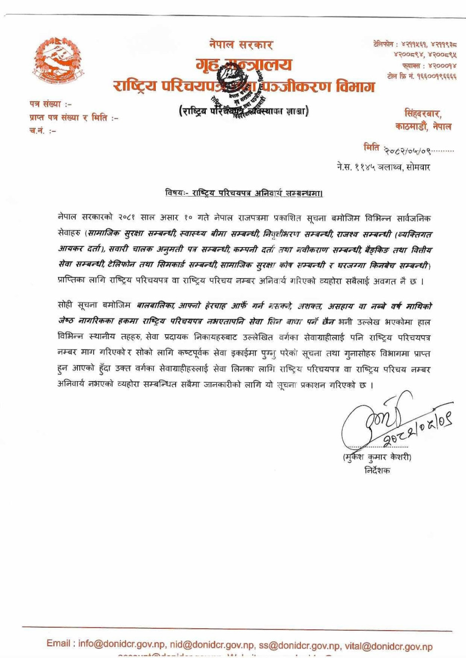 सम्बन्धित सरोकारवालाहरुको लागि राष्ट्रिय परिचयपत्र सम्बन्धी सूचना !