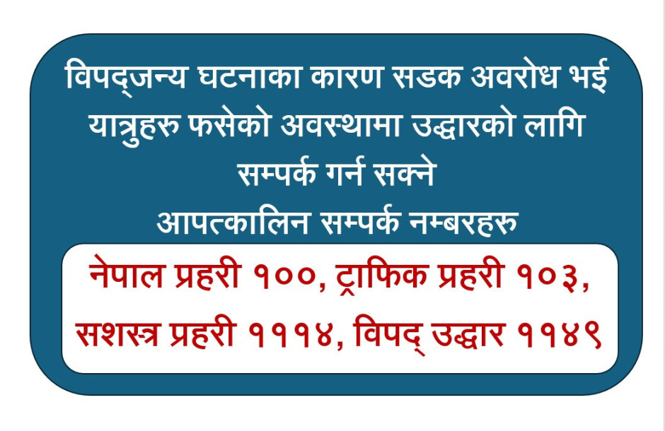विपद्जन्य घटनाका कारण समस्या परे सम्पर्क गर्नुपरेमा आपत्कालिन सम्पर्क नम्बर